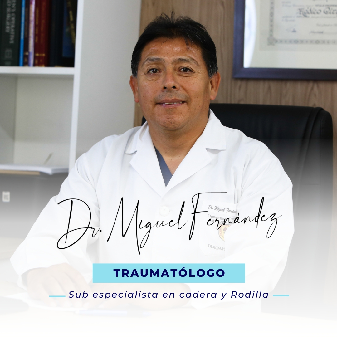 El Dr. Miguel Fernández Castillo es cirujano ortopédico especializado en enfermedades y trastornos de la Cadera, Rodilla y Medicina Deportiva. Se graduó de medico cirujano general en la Facultad de Medicina de la Universidad Católica Santa María de Arequipa. Realizó su especialización en Ortopedia y Traumatología en el Hospital Cayetano Heredia de Lima, titulo otorgado por la Universidad Peruana Cayetano Heredia (UPCH) de Lima Perú.